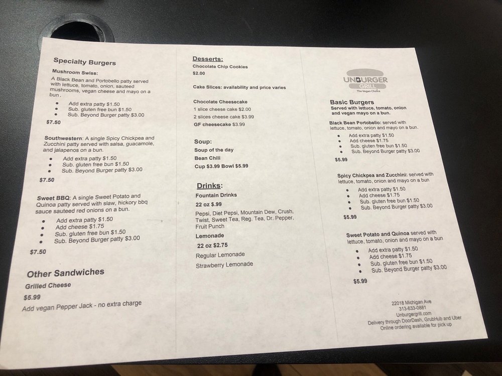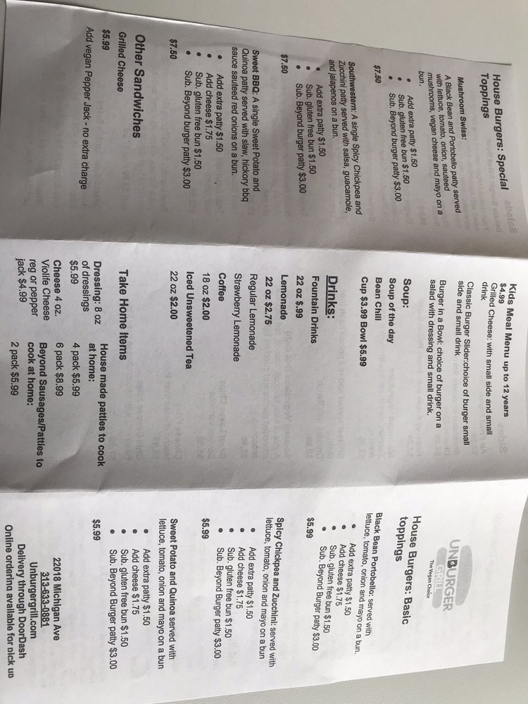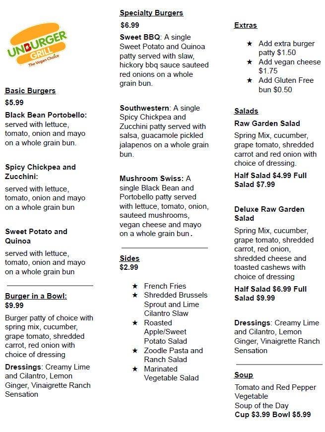 Unburger Grill Menu